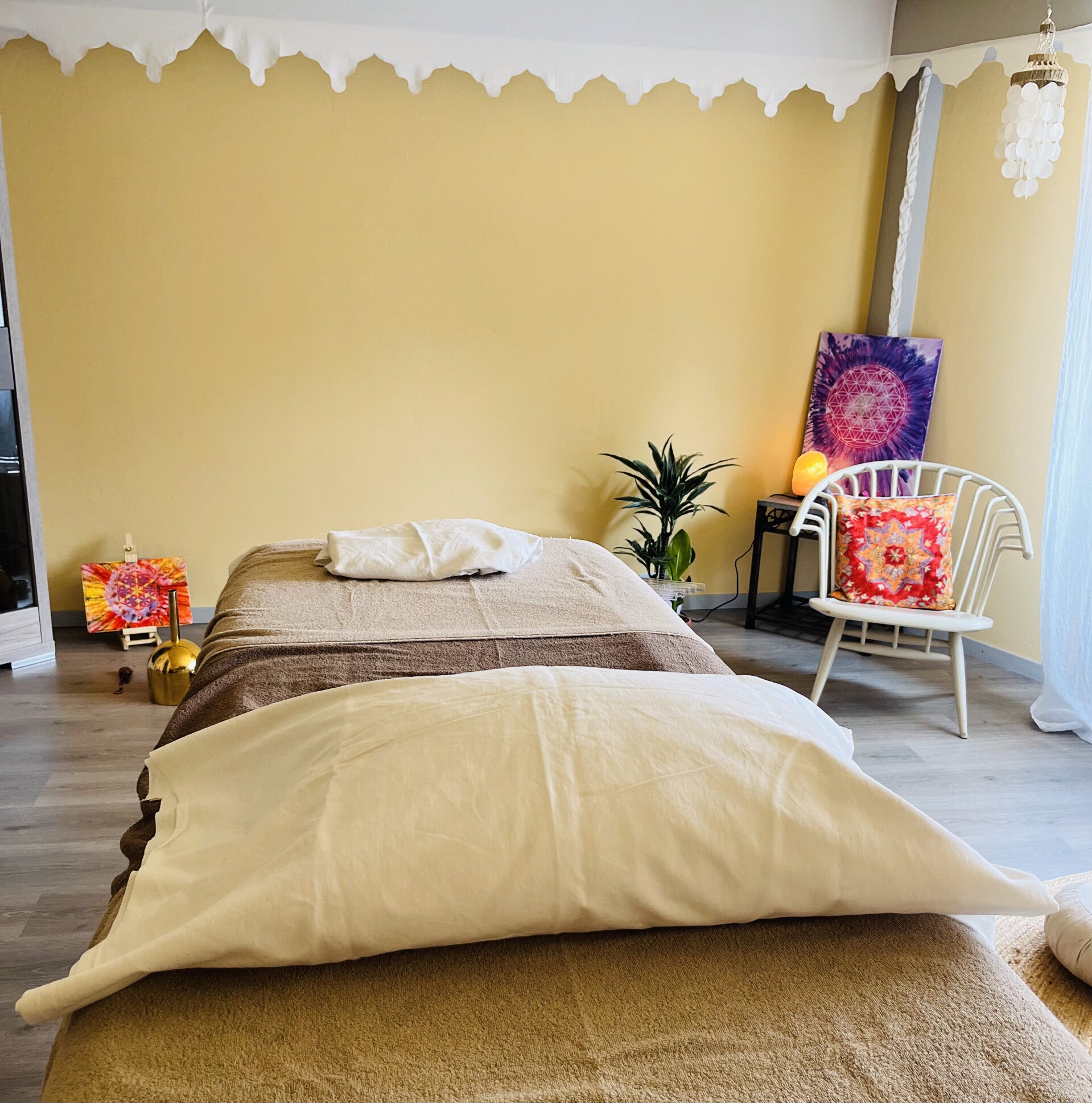 Osm'ose peut combiner sa séance avec différents instruments de musiques tels quel bols chantants, lyre, etc..